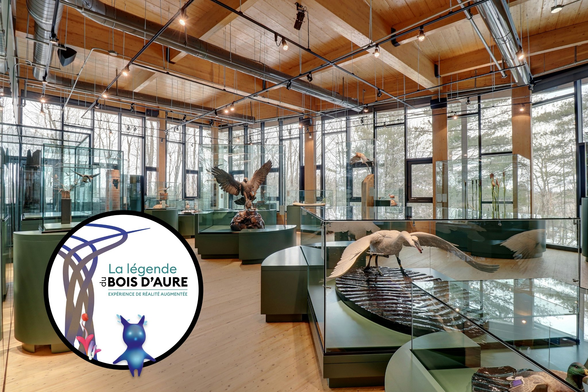 La Légende du Bois d’Aure est une fable écologique qui met en vedette 16 des 23 sculptures de l’exposition, dont plusieurs des oiseaux représentés ont été aperçus au Marais. Le concept invite les visiteurs à suivre un parcours découpé en neuf scènes, dans une ambiance colorée et surréaliste, où l’imaginaire rencontre le réel comme nulle part ailleurs! Pour rendre possible cette expérience unique et ambitieuse, l’intégration de plusieurs technologies émergentes aura été nécessaire. Cette expérience immersive est accessible gratuitement sur prêt de tablettes munies d’un casque d’écoute. Durée 30 minutes. Aucune réservation requise. Clientèle cible : 8 à 14 ans