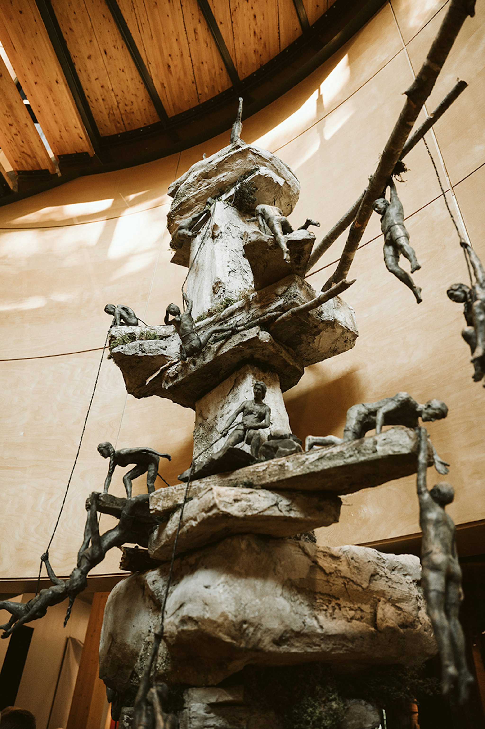 Préoccupé par les changements climatiques, l’artiste André Desjardins a imaginé une installation où vingt-six petits grimpeurs s’entraident pour se hisser vers un même sommet. Cette ascension reflète la puissance de la mobilisation, la force du nombre et la beauté de la solidarité. Ensemble, ils nous invitent à nous mobiliser autour d’un objectif commun et à adopter des comportements écoresponsables pour lutter contre le réchauffement de la planète, dès maintenant et pour les générations futures.