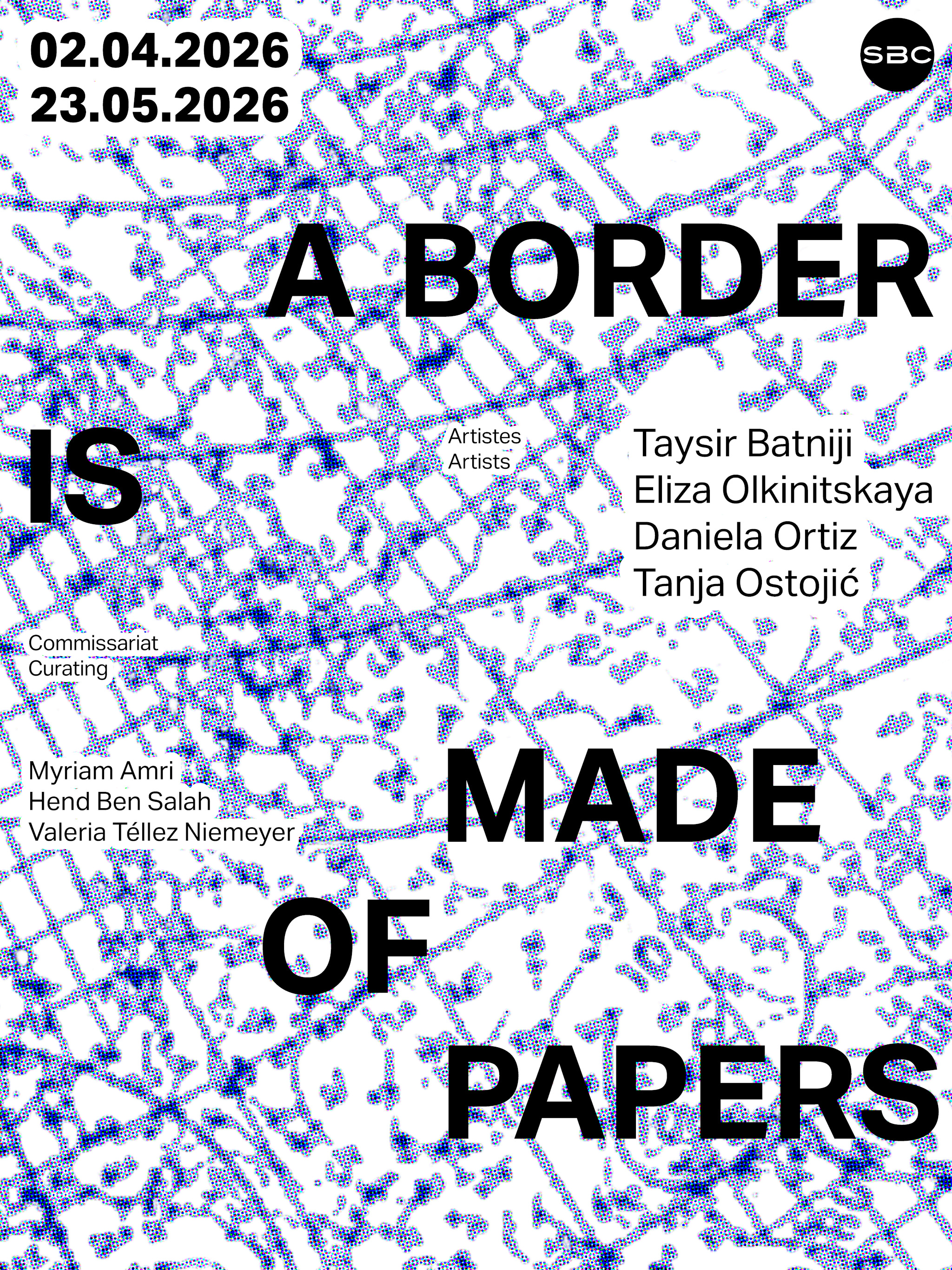 Arts visuels et numériquesDu 2 avril au 23 mai 2026Une frontière est faite de papiers SBC Galerie d'art contemporain