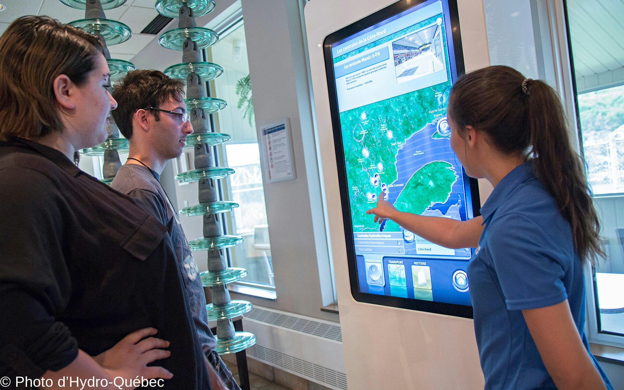 Un aménagement hydroélectrique démystifié ! Quelles sont les principales composantes d’un aménagement hydroélectrique ? Vous les découvrirez lors de la visite de la centrale Jean-Lesage. Un des plus grands barrages-poids du monde, dont l’un des joints évidés (cavité) est aussi grand qu’un Boeing 747 ! Une centrale où vous pourrez voir le rotor, une structure de 400 tonnes, tourner au-dessus de vos têtes et sentir toute l’énergie des 8 groupes turbines-alternateurs.