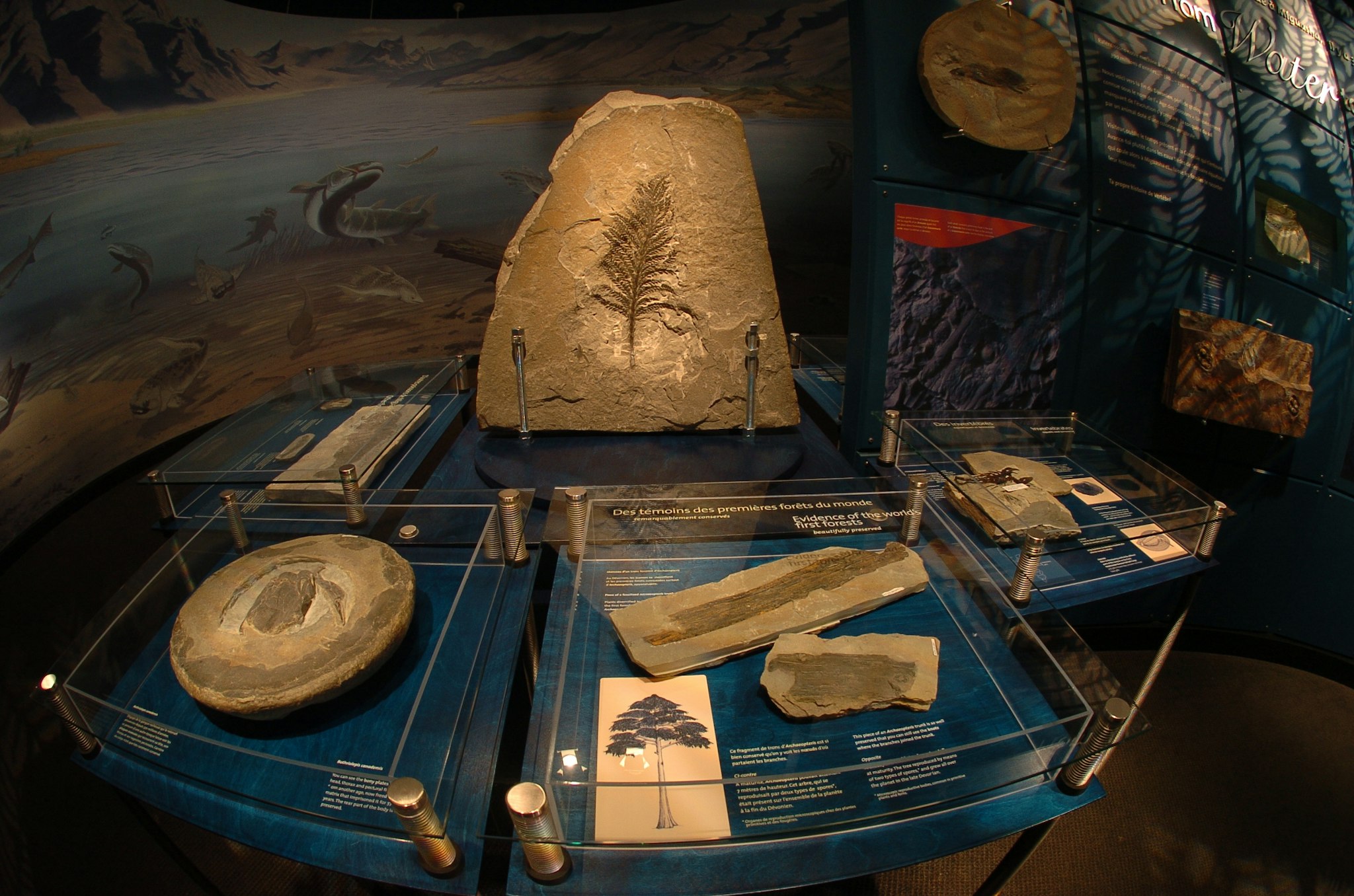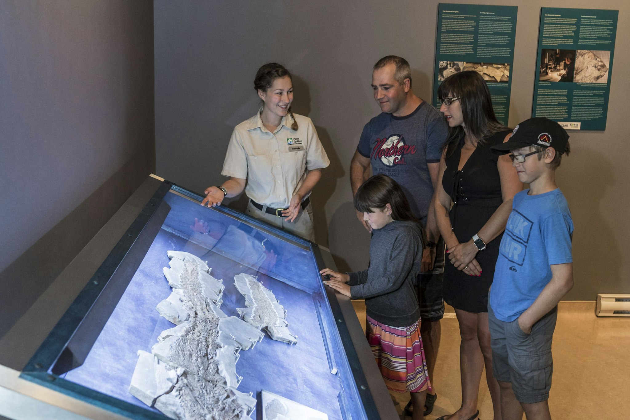Préparez-vous à découvrir une Gaspésie bien différente de celle d’aujourd’hui et à contempler des fossiles magnifiques, mis en valeur au fil d’une exposition qui vous entraînera très loin dans le passé – jusqu’à « l’Âge des poissons », il y a quelque 380 millions d’années. De là, vous remonterez avec vos lointains ancêtres le cours… de l’évolution. Vive Elpi, Roi de Miguasha! Unique au monde, le fossile d’Elpistostege watsoni – Elpi pour les intimes – pourrait bien être celui de notre plus proche parent à nageoires. Une découverte exceptionnelle, qui a reçu d’emblée une attention internationale! Venez apprendre les plus récents secrets révélés à propos de ce fascinant poisson fossile illustrant magnifiquement le passage de l’eau à la terre chez les vertébrés. Le laboratoire pédagogique vous fera découvrir concrètement le monde fascinant de la paléontologie. Sous quelles formes trouve-t-on les fossiles à Miguasha? Comment les prépare-t-on pour l’observation? Quelles caractéristiques nous permettent de les identifier? Plaisir garanti pour petits et grands! Ne manquez pas de descendre sur les rives de la baie des Chaleurs afin d’y découvrir la falaise fossilifère et de laisser un guide vous en expliquer les secrets. Un sentier pédestre balisé par des panneaux d’interprétation permet aussi de suivre la grande histoire de la vie sur notre planète. Les plus remarquables fossiles de poissons, d’invertébrés et de plantes des collections paléontologiques du parc sont mis en valeur dans l’exposition « De l’eau à la terre ». De façon autonome ou guidée, venez comprendre comment le site de Miguasha a bouleversé notre compréhension de l’évolution de la vie sur Terre.
