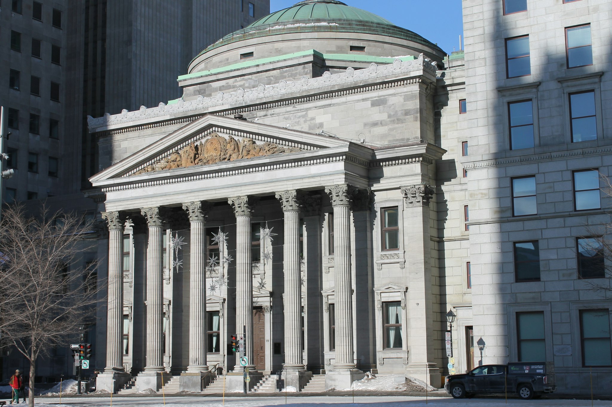 Founded in 1817, it is the oldest banking institution in the country. The imposing facade of its head office, dating back to 1847, evokes the power of anciant Rome. Redesigned in 1905, the lavish interior echoes the success of this institution. Architects : J. Wells; McKim, Mead and White. Visitors are also welcome at the Bank of Montréal Museum.
